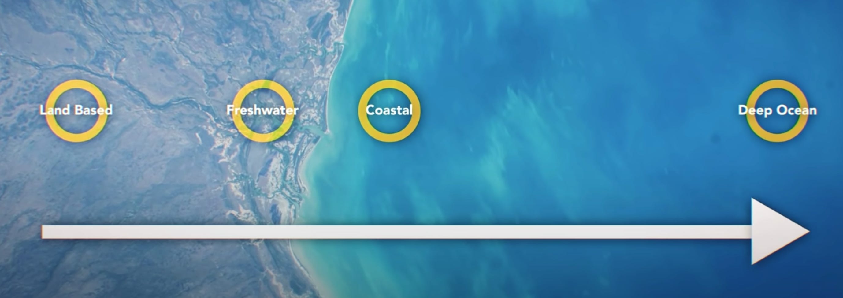 Fast forward a couple of 1000 years and China continues to lead the way in aquaculture, only now the techniques have advanced far beyond flooded rice paddies and carp. The first aquaculture has expanded into four distinct two realms, land-based freshwater, coastal, and, most recently, deep ocean. The pattern to see here is that with each successive step farming operations have moved further and further away from human dwellings. The reason for this is simple: when done in such concentrated environments, aquaculture can produce waste products hazardous to both the natural environment and humans alike. So not only do these practices lead to habitat degradation by taking up space, where other need aquatic species to prefer to live and produce waste, which can leak into surrounding waters and cause local eutrophication. But on the whole, they appear no better at supporting a sustainable relationship between man and nature than your more traditional farming practices. But the further we move away from these operations, the more these negative impacts are mitigated.
