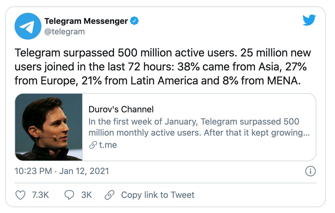 💬 Listening to the market’s weak signals, a new era of Social networks has begun. On January 12, updates to Whatsapp’s privacy terms & conditions started the Whatsapp Scandal. Info or Hoax? It did not matter because shortly after, Elon Musk has even jumped into the fray, tweeting last week “Use Signal” to his more than 42 million followers. As the controversy grew, Signal has become one of the most downloaded apps on Android and iOS. The same month Clubhouse, a social podcasting app invaded Europe & became the most downloaded app on German iOS.