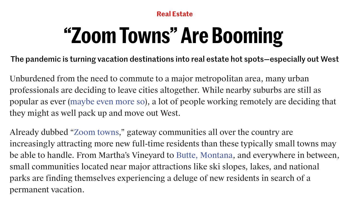 "Anywhere from 14 to 23 million Americans are planning to move as a result of remote work. Combined with those who are moving regardless of remote work, near-term migration rates may be three to four times what they normally are." - Upwork study in October 2020