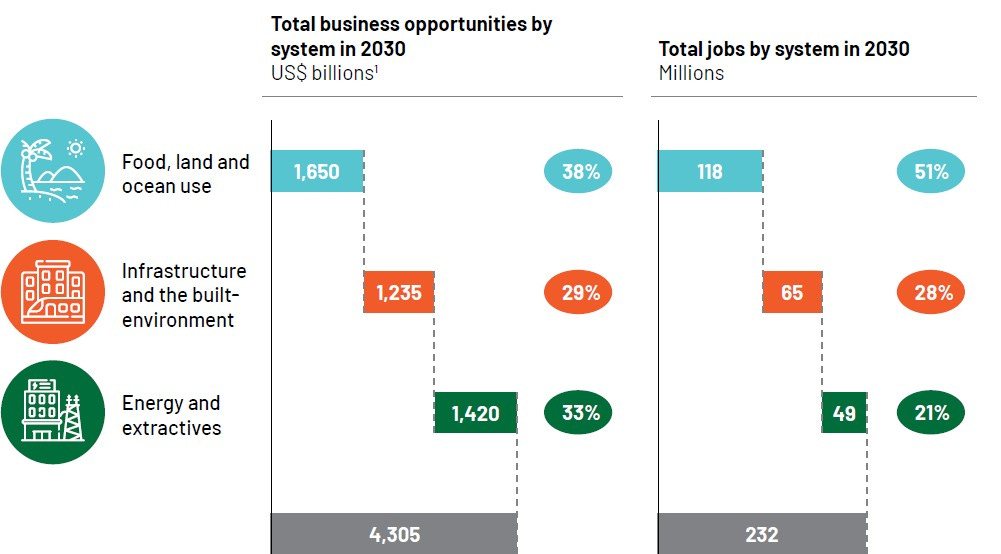 59 nature-positive business opportunities could transform the three major socioeconomic systems from a net-negative to net-positive impact on nature. Unlocking these business models will change the way we farm and fish; how our infrastructure is designed, built, serviced, and connected; and how we extract and recycle natural resources, and power our economy.