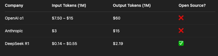 For Deepseek: The delta isnât small â itâs an entirely different cost model. This opens the door to startups, universities, and creators who could never afford to play at the frontier before.