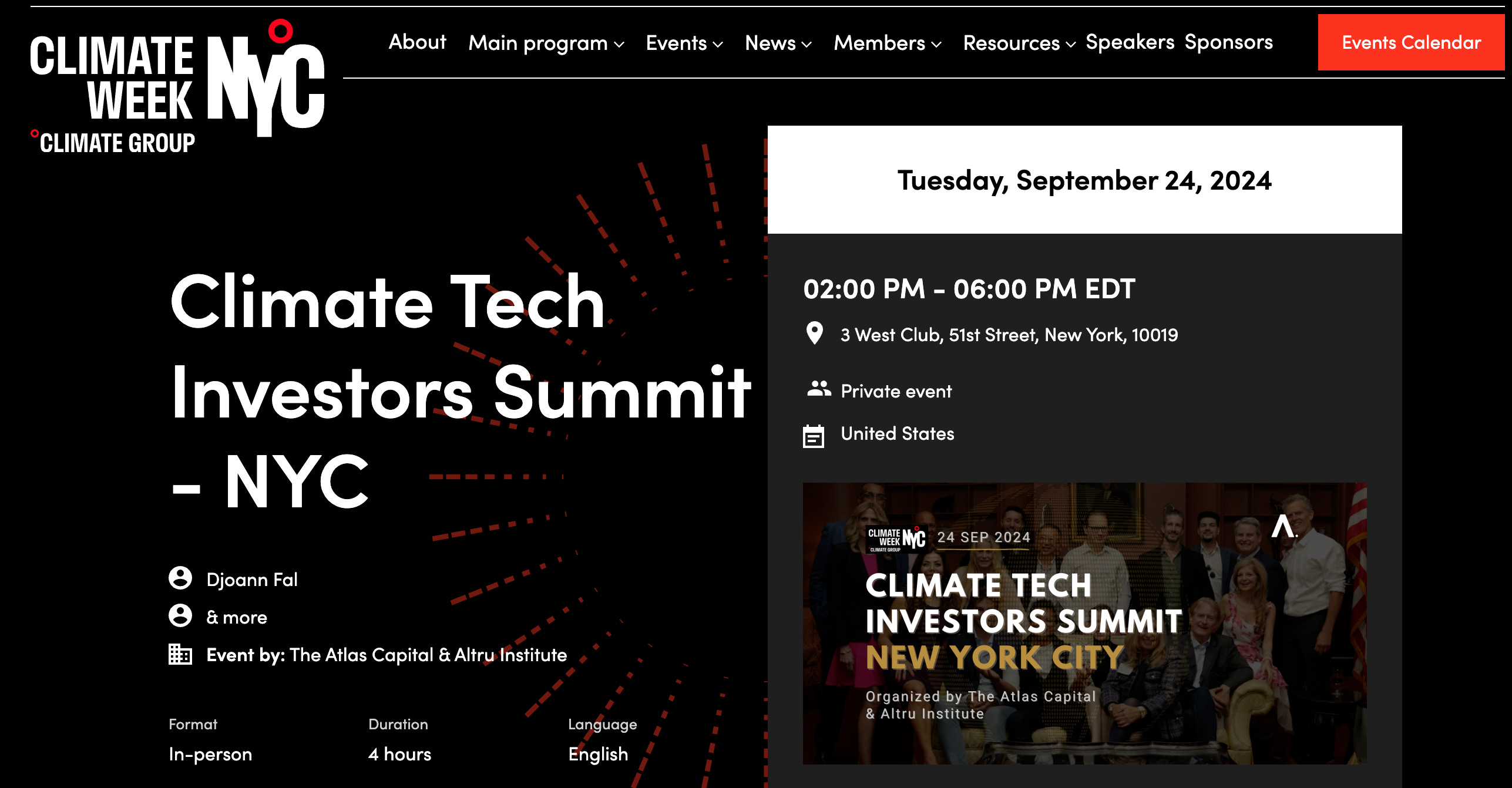 'Investors for Climate Tech - NYC' was the result of a collaboration between đ The Atlas Capital (Singapore) and the Altru Institute (New York).