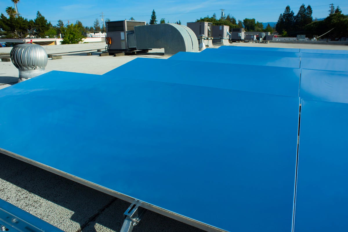 SkyCool Systems is a company based in California that aims to create an electricity-free cooling system. The HVAC system is responsible for 40% of energy usage. They have developed a passive cooling panel that has Dual-Mode film applied to the top surface. The film reflects sunlight to prevent the panels from heating up during the day and also emits infrared heat to the cold sky, which keeps the panels and any fluid flowing in them cool 24/7/365. A fluid is pumped through each panel. The panels’ temperature can drop by up to 15°F below the ambient temperature with zero electricity input. SkyCool’s panels can be used as an add-on to air conditioning and refrigeration systems. In some circumstances, the panels can even replace an air conditioning unit. This is the first step towards an electricity-free HVAC system.