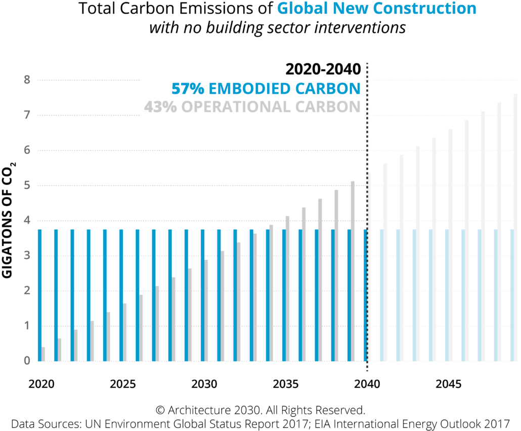 There are two types of carbon emissions from the building sector: embodied and operational. Embodied carbon is carbon that is associated with the materials, construction process, and disposal. Operational carbon is carbon that is associated with operating the buildings, such as HVAC, lighting system, and electricity usage.