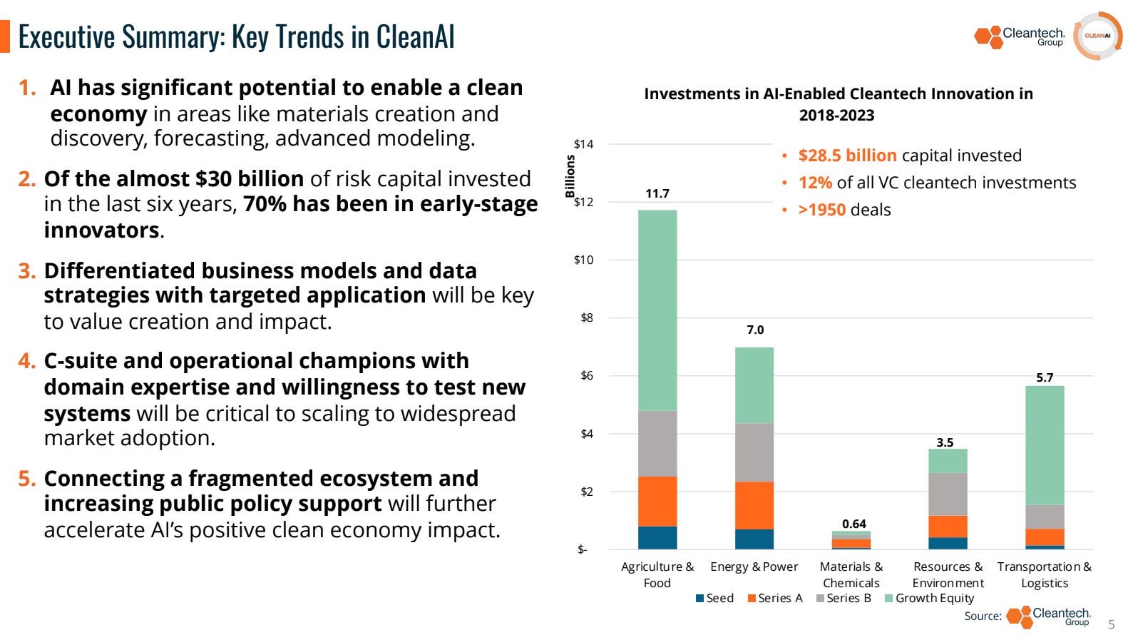Clean AI integrates artificial intelligence with clean energy and environmental solutions to optimize efficiency, reduce emissions, and support sustainability efforts; for example, AI-powered systems can optimize energy consumption in smart buildings, reducing waste and lowering carbon footprints. Here is their executive summary.