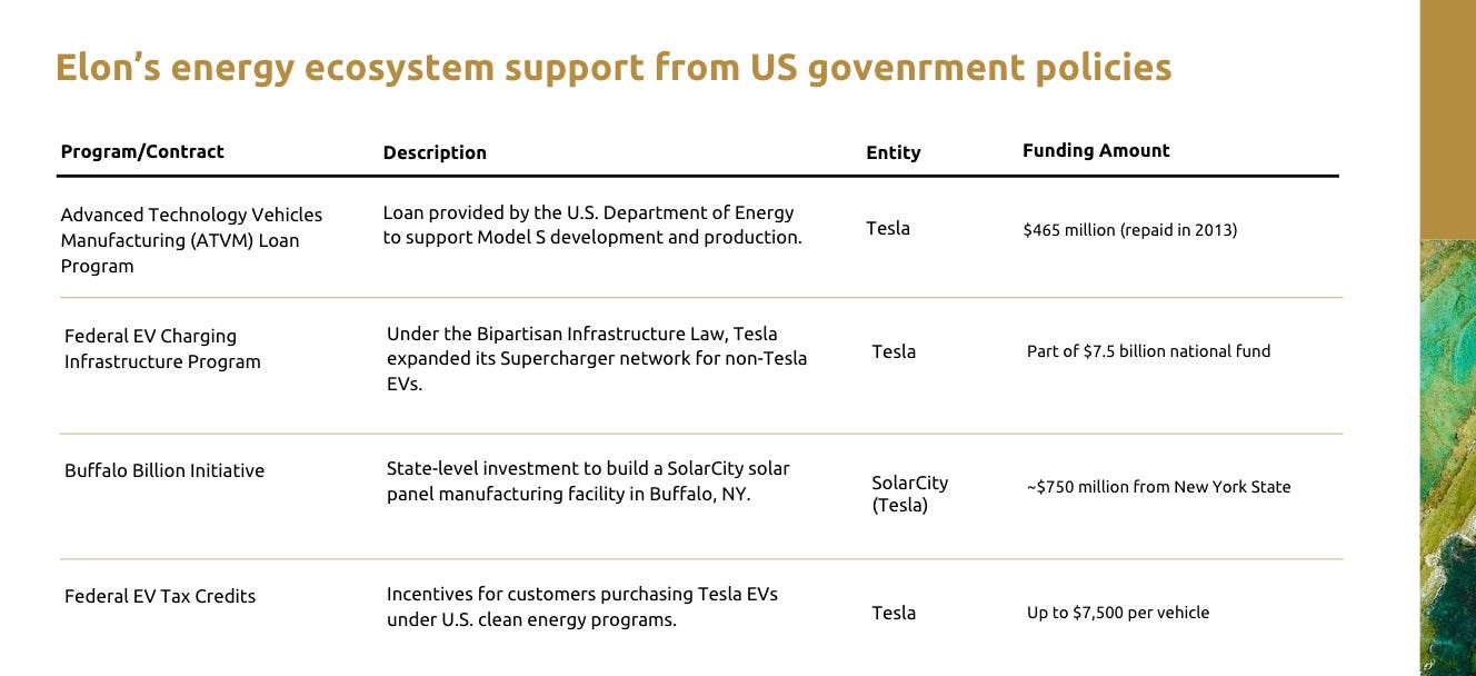 US Government supporting Elon’s businesses: Further in that direction, after some research, Elon is already in big business with the US government (and Trump of course), here is a table illustrating how: