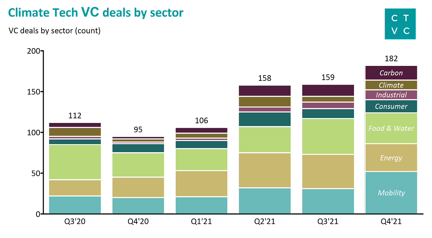 💰 In 2021, climate tech startups raised ~$40b across 600+ venture deals